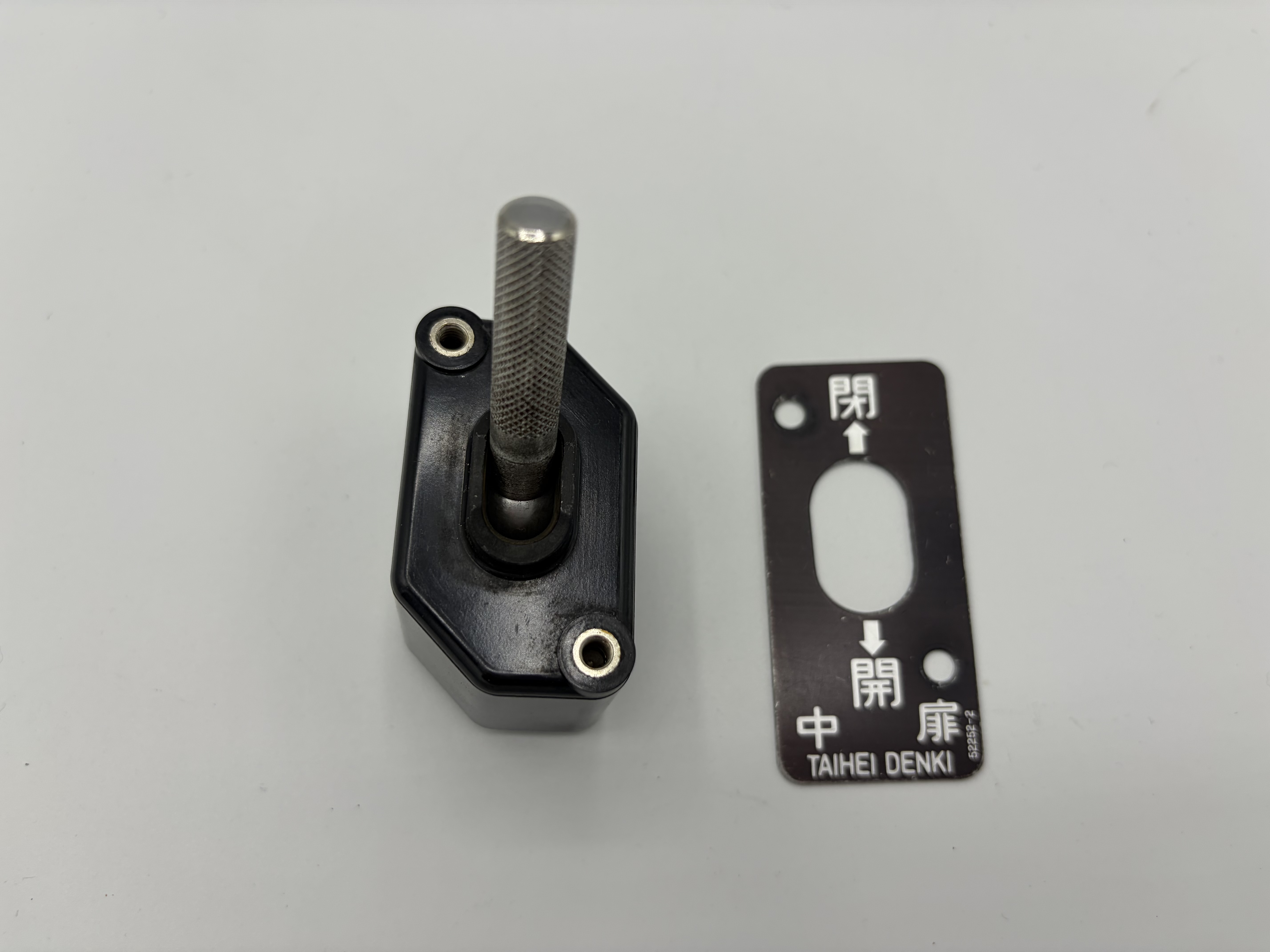 九州産交バス車両で実際に使用し、現役を退いた路線バス車両からはずした「ドア開閉スイッチ(中扉)」です。