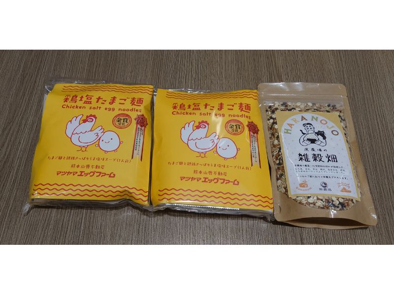 【鶏塩たまご麺 1食単品】油揚げめん(小麦粉(国内製造)、ラード、卵粉、食塩)、スープ(食塩、糖類、でんぷん分解物、チキン風味調味料、でんぷん、たん白加水分解物、鶏肉粉末(鶏肉(熊本県産))、野菜エキス、香辛料、ねぎ粉末、酵母エキス)/加工でん粉、調味料(アミノ酸等)、増粘剤(グァーガム)、カラメル色素、酸化防止剤(ビタミンE)、(一部に小麦・豚肉・卵・鶏肉を含む)