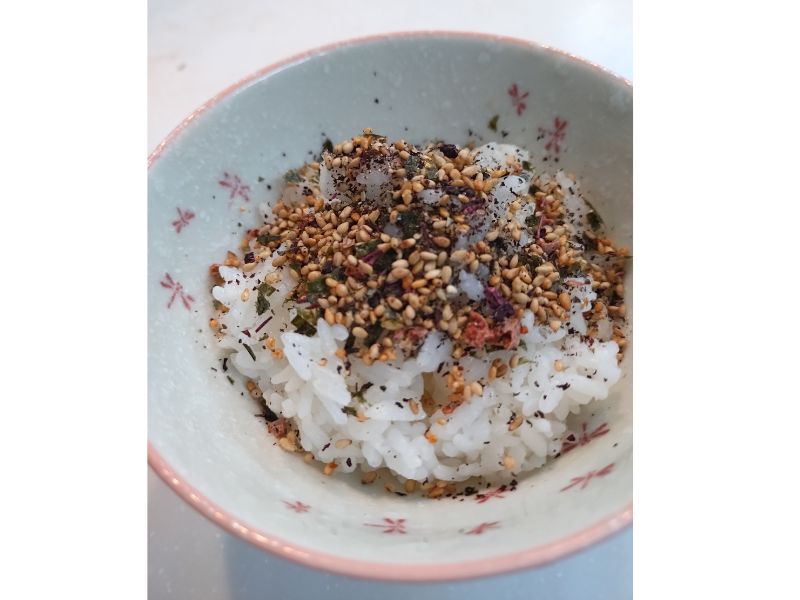 - いりごま(国内製造)、食塩、乾燥赤しそ(赤しそ、食塩、梅酢)、梅フレーク、(梅しそ液)、でん粉、砂糖、のり、しょうゆ、かつお節、たんぱく加水分解物、デキストリン/調味料(アミノ酸等)、酸味料、甘味料(甘草)、着色料(カロテノイド)(一部に小麦・ごま・大豆を含む)