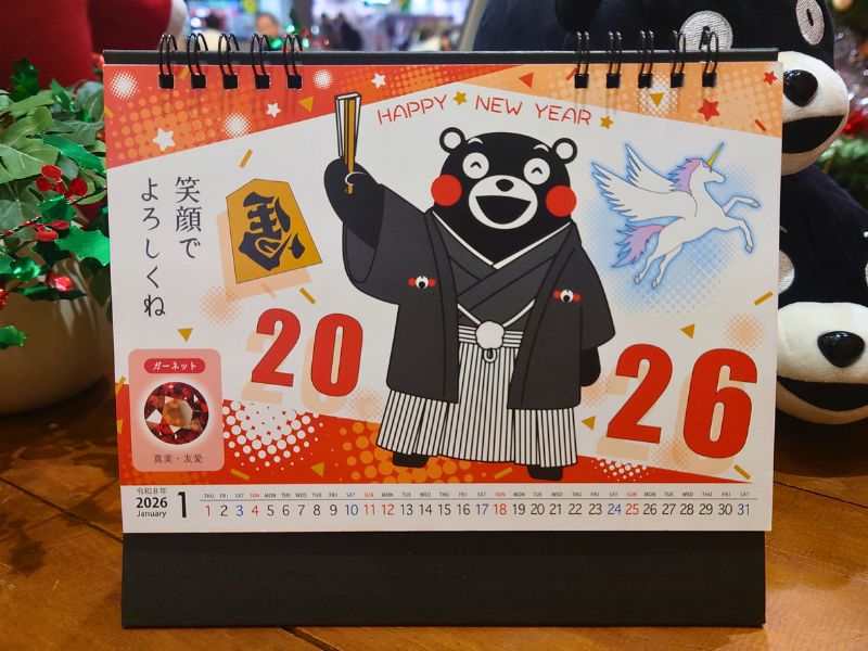 デスクの相棒に!仕事の効率UP↑↑ デスクワークの合間に、ほっと一息つけるくまモンが待っています!見るたびに笑顔になれるくまモンパワーで、2026年のお仕事を応援します!毎月の誕生石とくまモンからの一言メッセージもついていてワクワクしますね♪