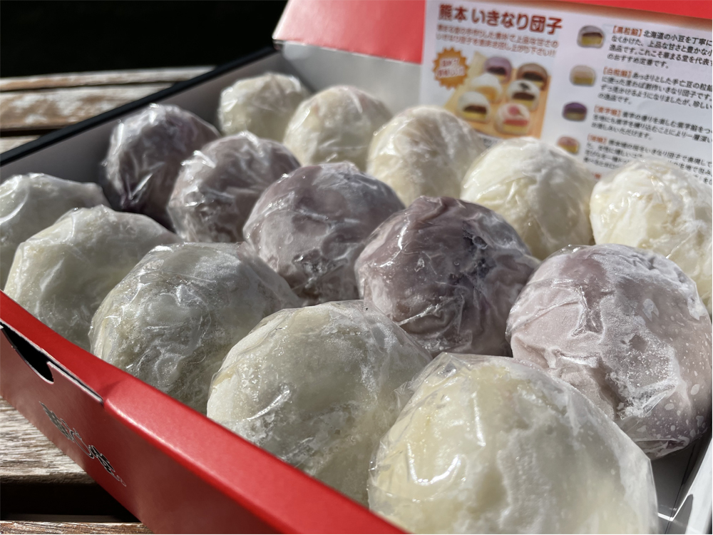華まる堂の粋なる団子。団子に使用する唐芋はすべて熊本県産。丸々と太った唐芋を輪切りにして、丸ごと生地で包む…芋のおいしさがそのまま活きているから芋本来のおいしさを最大限に楽しむことができます。そして、芋のホクホク感、生地のモッチリしっとり感、どちらも損なうことなく引き立ててくれる上品な甘さの極上あんこ。こだわり抜いた当店自慢の「いきなり団子」をどうぞお楽しみください。