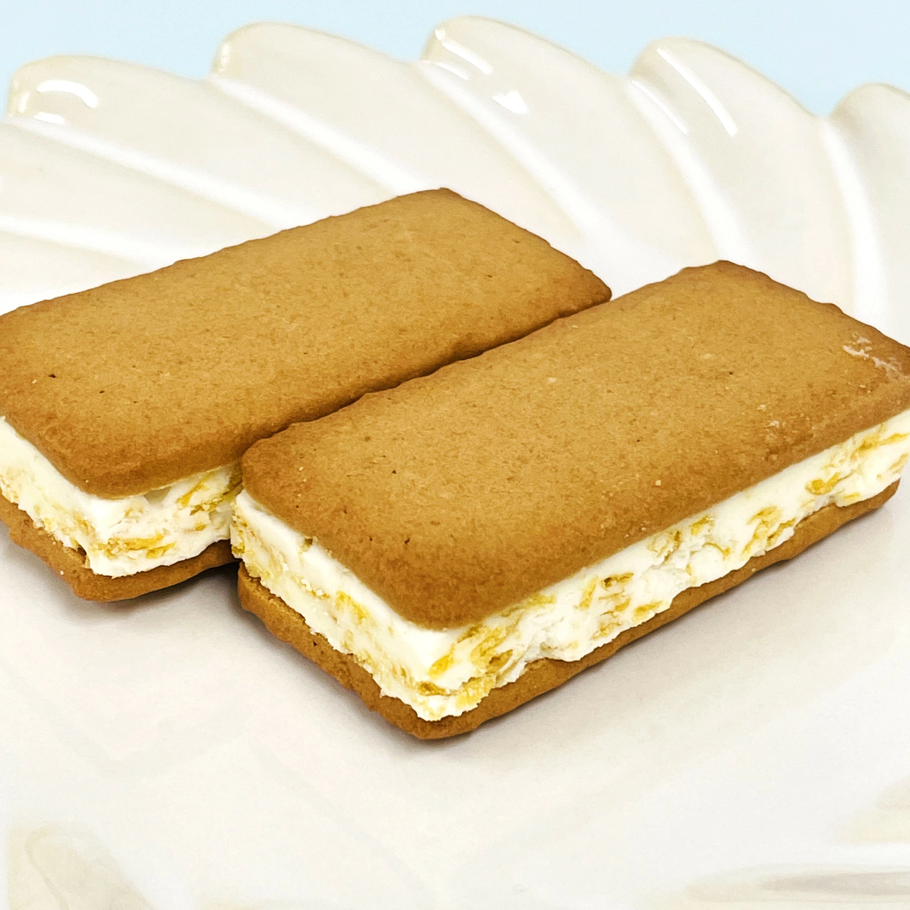 サクサクのクッキーに、阿蘇ジャージーミルクを練り込んだホワイトチョコレートをサンドし、さらにチョコの中にはコーンフレークを加えているため、ザクザクとした食感も楽しめます。